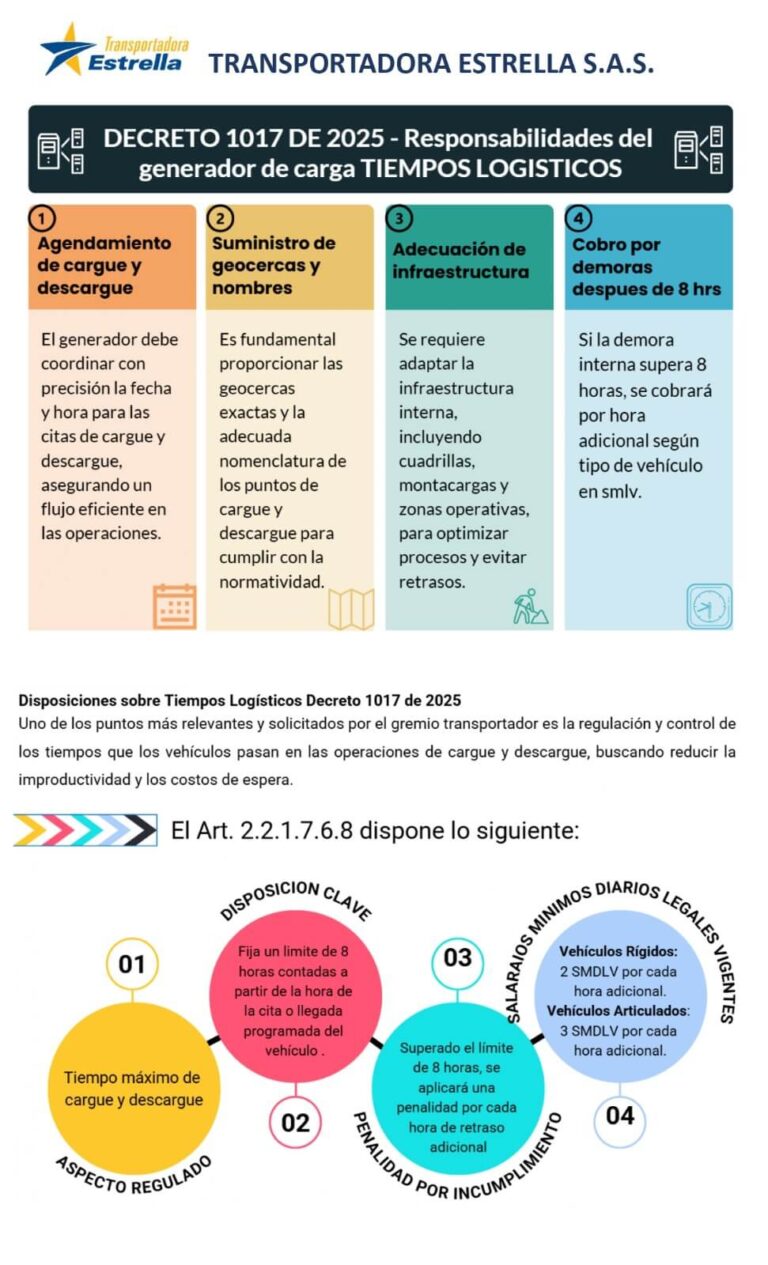 Decreto 1017 de 2025: Nueva Regulación de Tiempos Logísticos en el Transporte de Carga